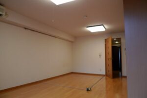 コンベックスで当たりを付けた場所に半透明の間仕切り引き戸を追加するという工事。