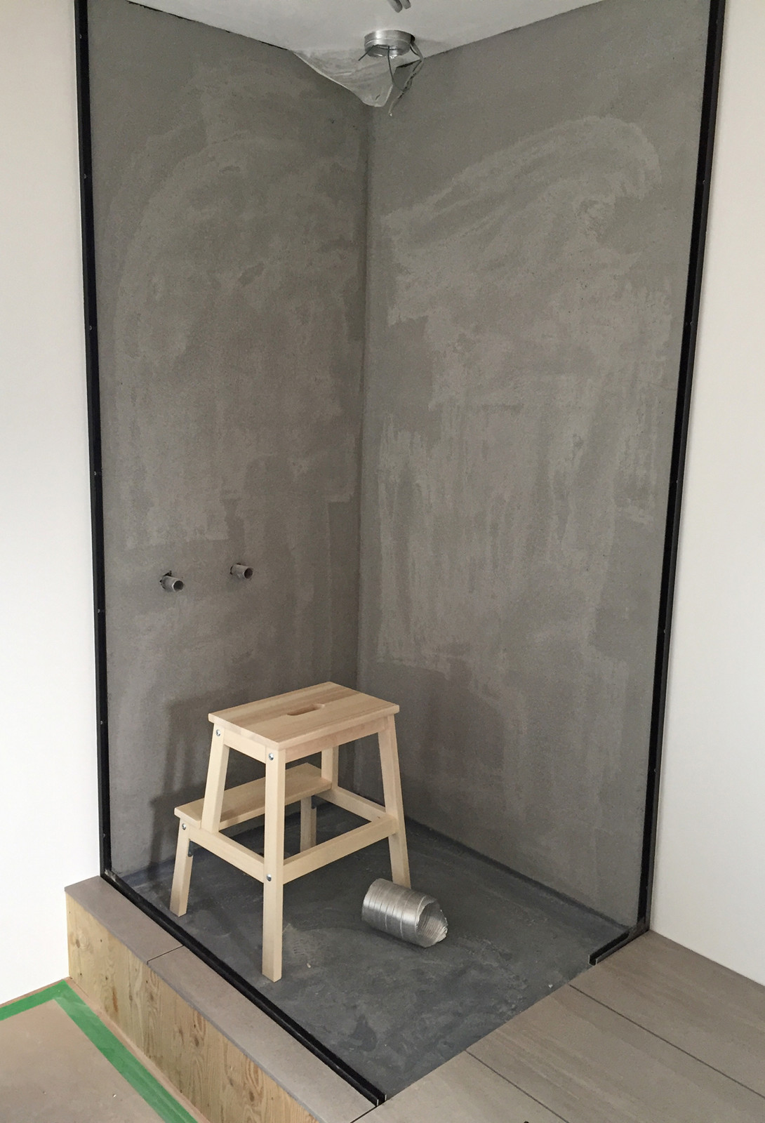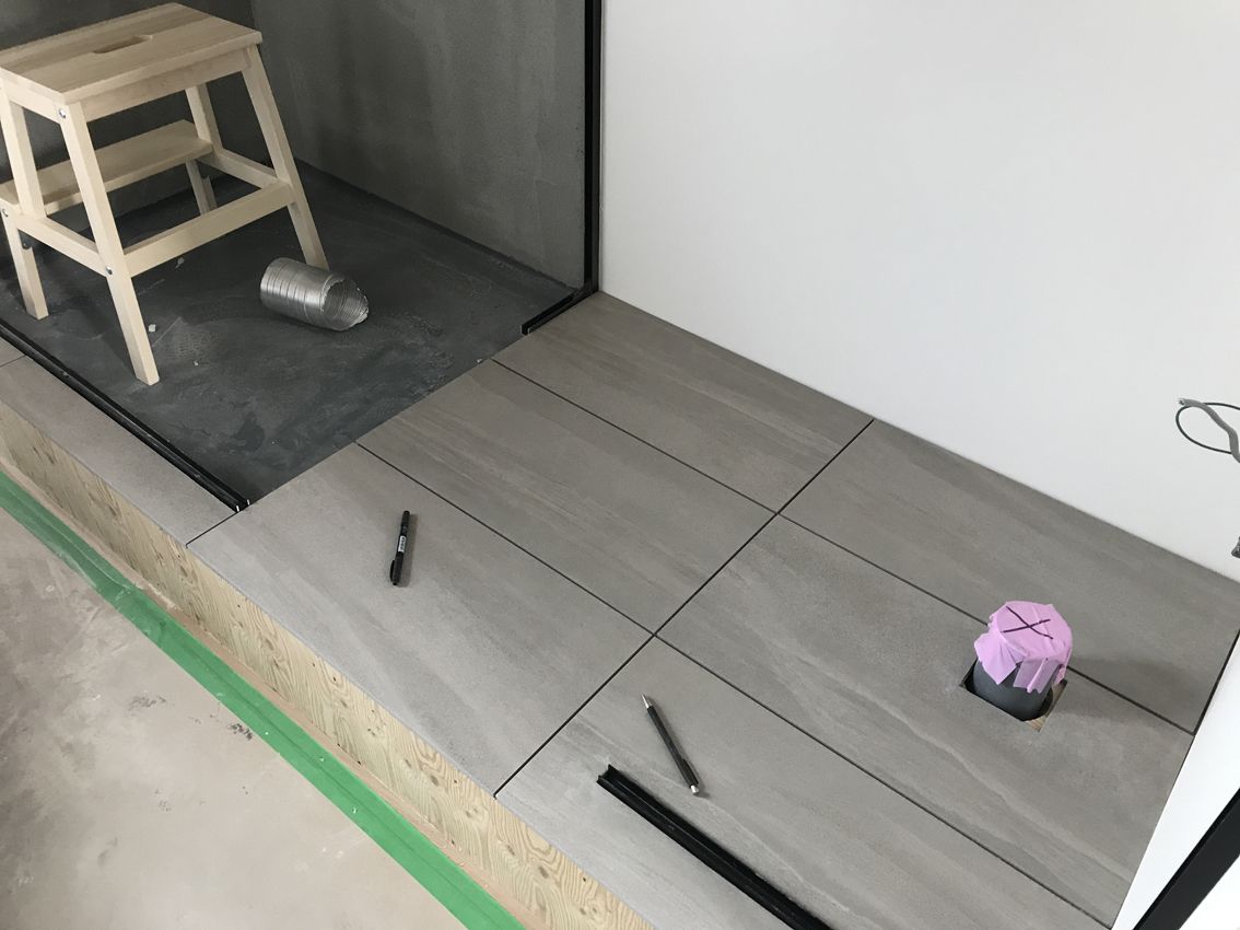 シャワールームには今後、壁に同じタイルが貼られたり、