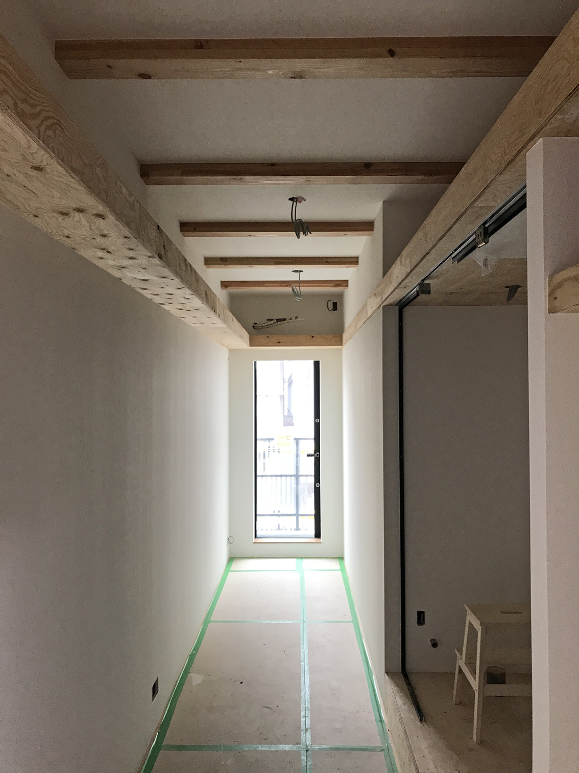 工事も順調に進み、賃貸住戸部分にはクロスの施工が終わりました。
