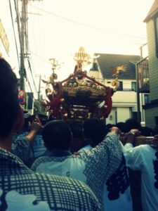 身長の小さい私は、神輿を担いでいるのか、ぶら下がっているのか…