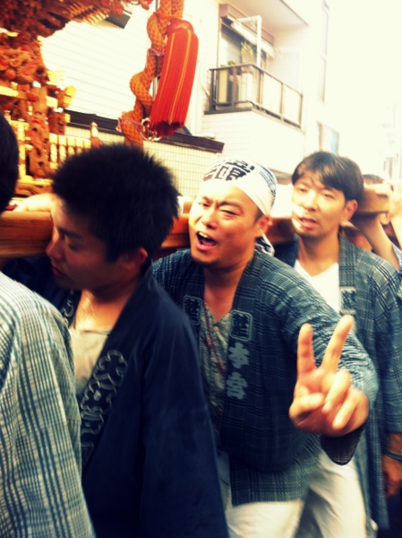 今年もバリカンの事務所の前では、しっかり先頭で担がせていただきました。
