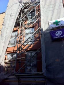 外部足場を外す前にキチンと施工できているか確認作業です。