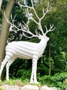 鹿が各地で出没しているようですが、鹿も臨機応変に居場所を自由に選ぶようになった、ということでしょうか。動物園の動物が放たれた「12モンキーズ」(これもウィルスの話ですね)を思い出しました(写真は明治神宮の杜に出没している名和晃平による白い鹿です。凛々しいです)。