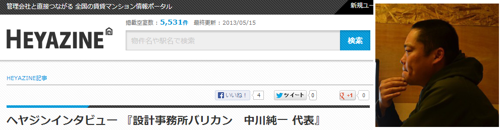管理会社と直接つながる 全国の賃貸マンション情報ポータル「HEYAZINE」さんに中川のインタビューを掲載頂きました。