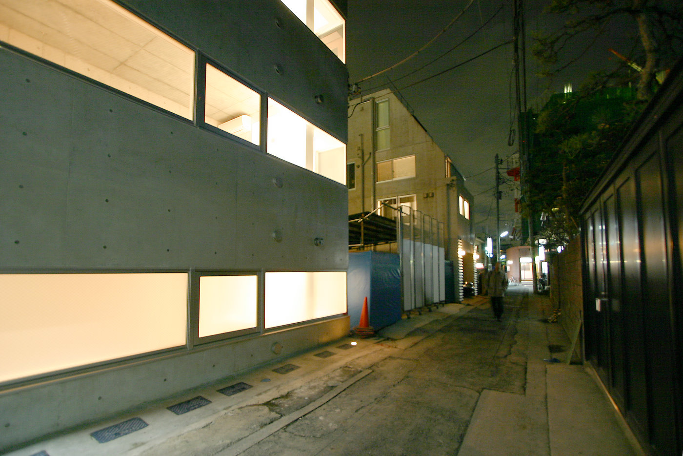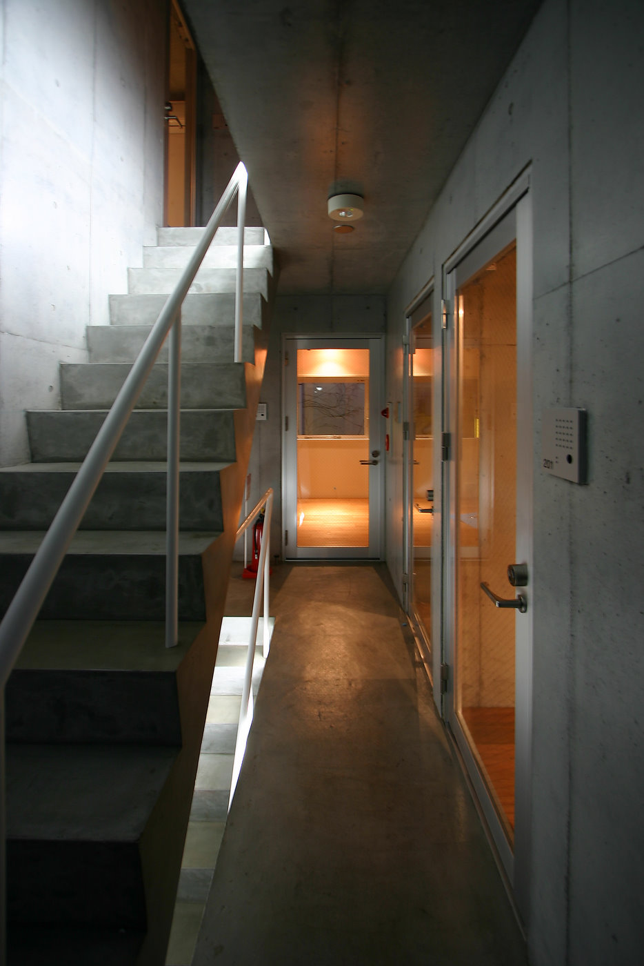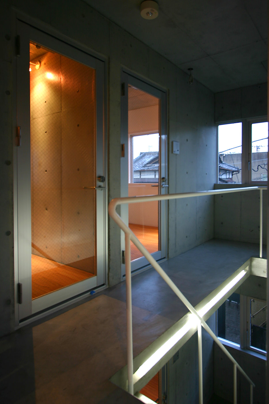 |用途 : 簡易宿泊所12戸|計画地 : 千葉県船橋市|敷地面積 : 84.75m2(25.6坪)|建築面積 :62.56m2|建ぺい率:73.81% / 80.00%|延床面積 : 187.68m2(56.77坪)|容積率:221.45% / 240.00%|構造・規模 : RC造・地上3階建て|施工 : 2006年6月-2007年01月|
