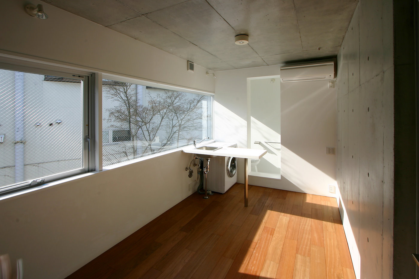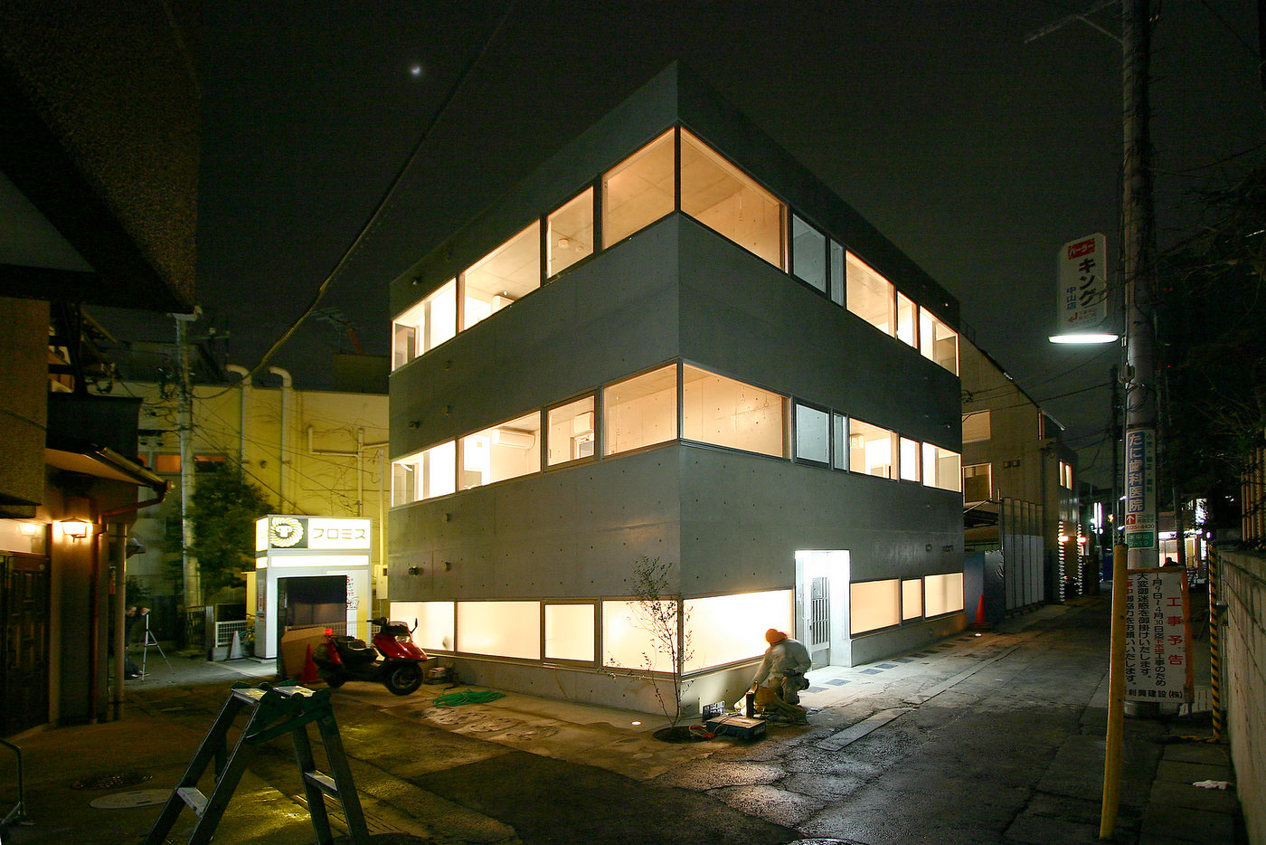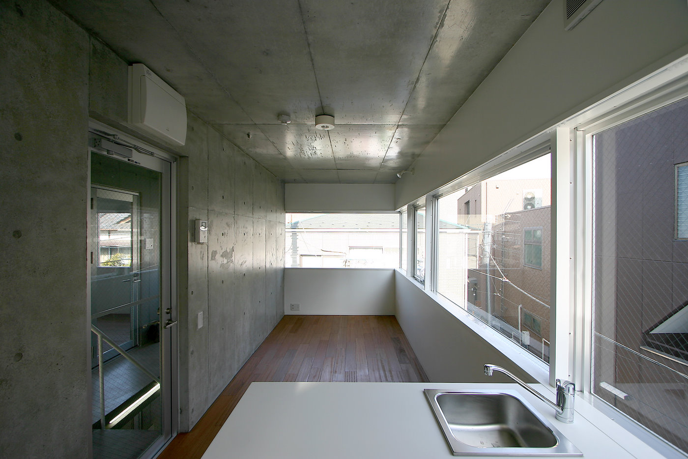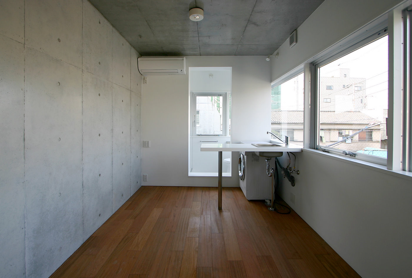 |用途 : 簡易宿泊所12戸|計画地 : 千葉県船橋市|敷地面積 : 84.75m2(25.6坪)|建築面積 :62.56m2|建ぺい率:73.81% / 80.00%|延床面積 : 187.68m2(56.77坪)|容積率:221.45% / 240.00%|構造・規模 : RC造・地上3階建て|施工 : 2006年6月-2007年01月|