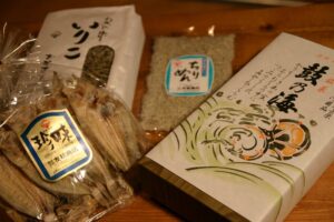 それをニッシンイクスの社長にお話していただいたようで、ならば名産品を持って行きなさい!ということで、わざわざお持ちいただいちゃったというわけなんです。