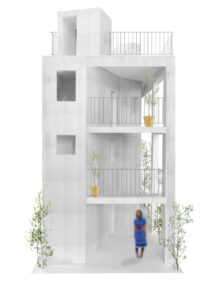 大きな駐車スペースのある家です。このスペースと奥にある庭と家がどんな関係になるか非常に楽しみ。
