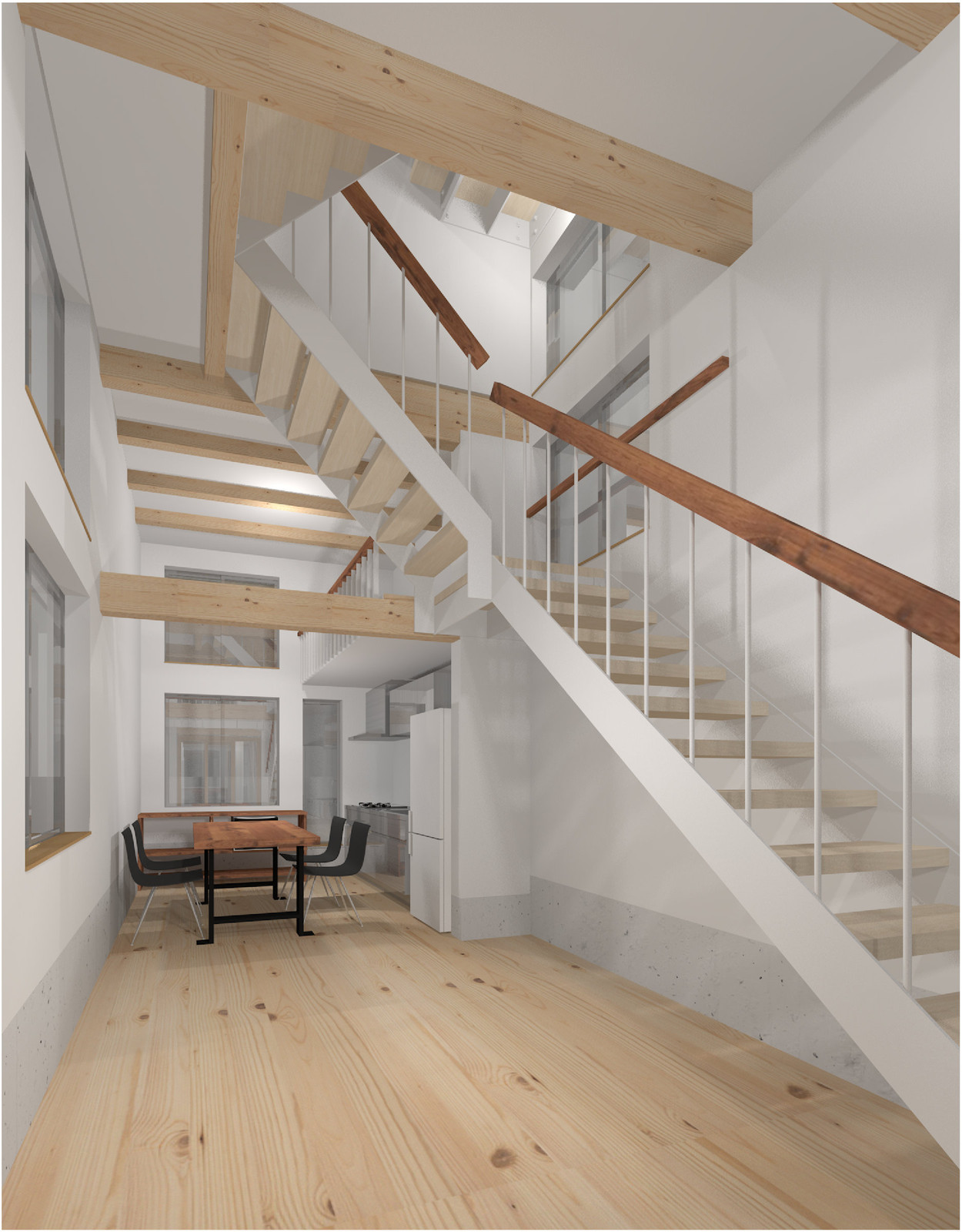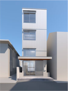 | 専用住宅 | 計画地:東京都渋谷区 | 敷地面積:42.54m2(12.8坪) | 建築面積:25.48m2(7.7坪) | 延床面積:76.44m2(23.1坪) | 構造:木造 | 規模:地上3F建て | 設計:2015.01-2015.11 | 施工:2015.11~