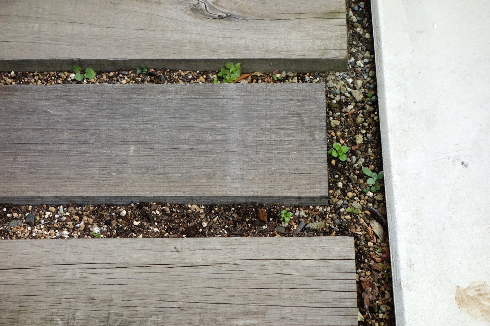 枕木の隙間は雑草が少しずつ芽を出してます。