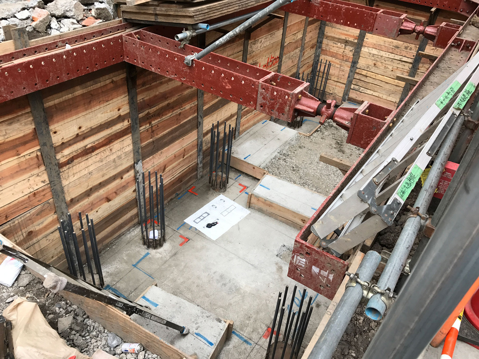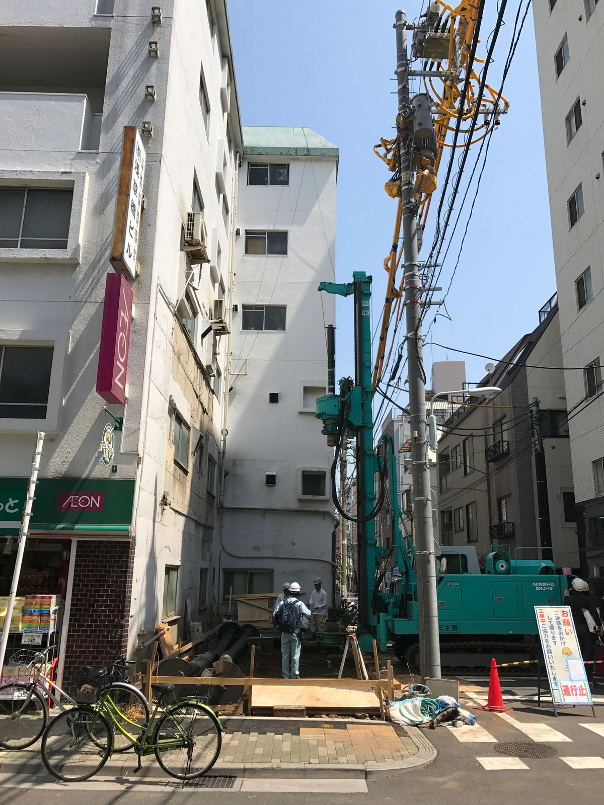 浅草橋 杭~配筋 2017 8/24 1298-浅草橋の出窓がある集合住宅 9001-ボーズのバリカン日記 2017年8月24日 小さな小さな敷地で浅草橋の集合住宅着工です。駅から近いこともあり、1階と半地下は店舗を想定。 半地下の根伐りなので、かなり深いです。山留めは久しぶりに切梁(キリバリ)が登場。切梁がある現場って、すごく現場感が高まる。 高円寺のように半層ずれているので型枠や鉄筋が複雑。監理してるこちらも混乱してきます。 来年1月に向け、引き続き宜しくお願いします! 1298-浅草橋の出窓がある集合住宅 9001-ボーズのバリカン日記 この記事が気に入ったら フォローしてね! Follow @jun_bariquant よかったらシェアお願いします! URLをコピーしました! 西小山 杭~根伐り~基礎配筋~埋め戻し 【ミナのナは菜っぱのナ】再開です。 関連記事 2024年も(小規模に)よろしくお願いいたします 2024年1月10日 天空率はコツが必要。天空率コンテストに入賞しました! 2023年6月20日 1階づくりはまちづくり その4(完) 2023年4月6日 工事看板にQRコードをつけました 2023年3月19日 1階づくりはまちづくり その3 2023年3月13日 今年のキーワードは「おちつけ」。 2023年3月10日 東田端の集合住宅 建て方完了 2023年2月27日 「NPO法人ピーク・エイド」へ寄付のお知らせ 2023年2月16日