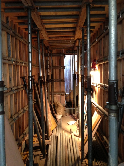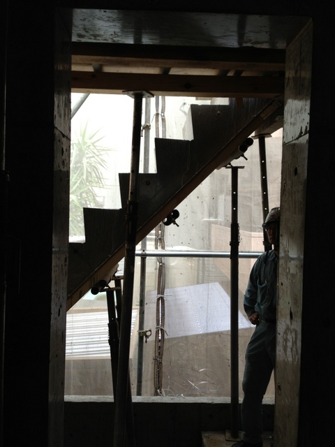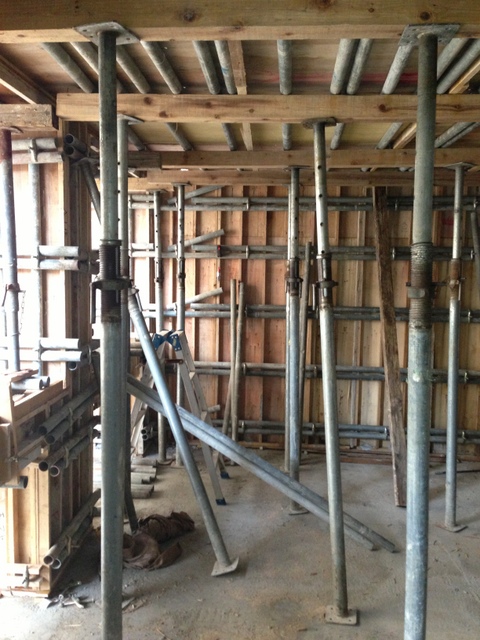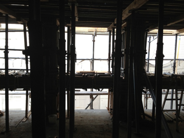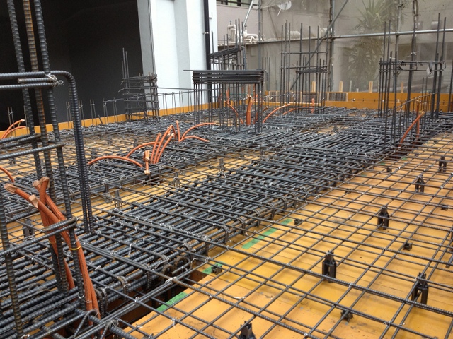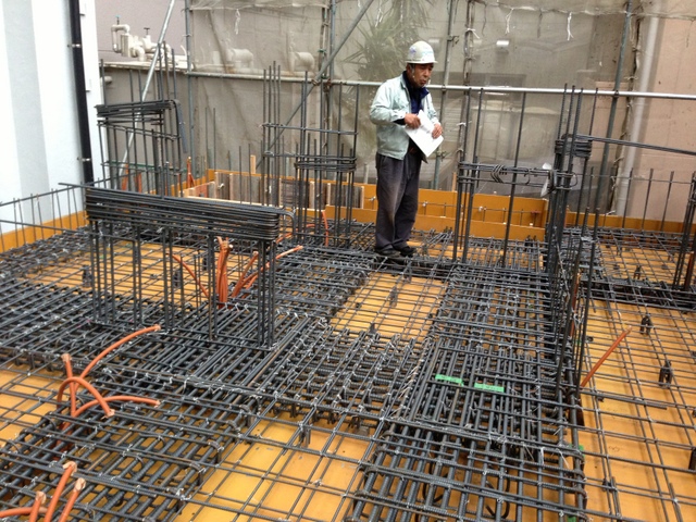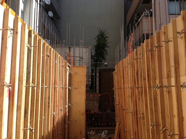 コンクリートを流し込むための型枠を建てて配筋していきます。