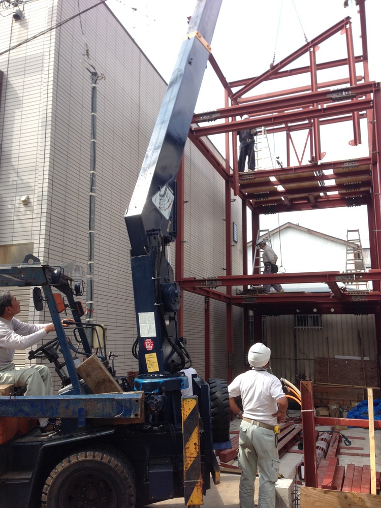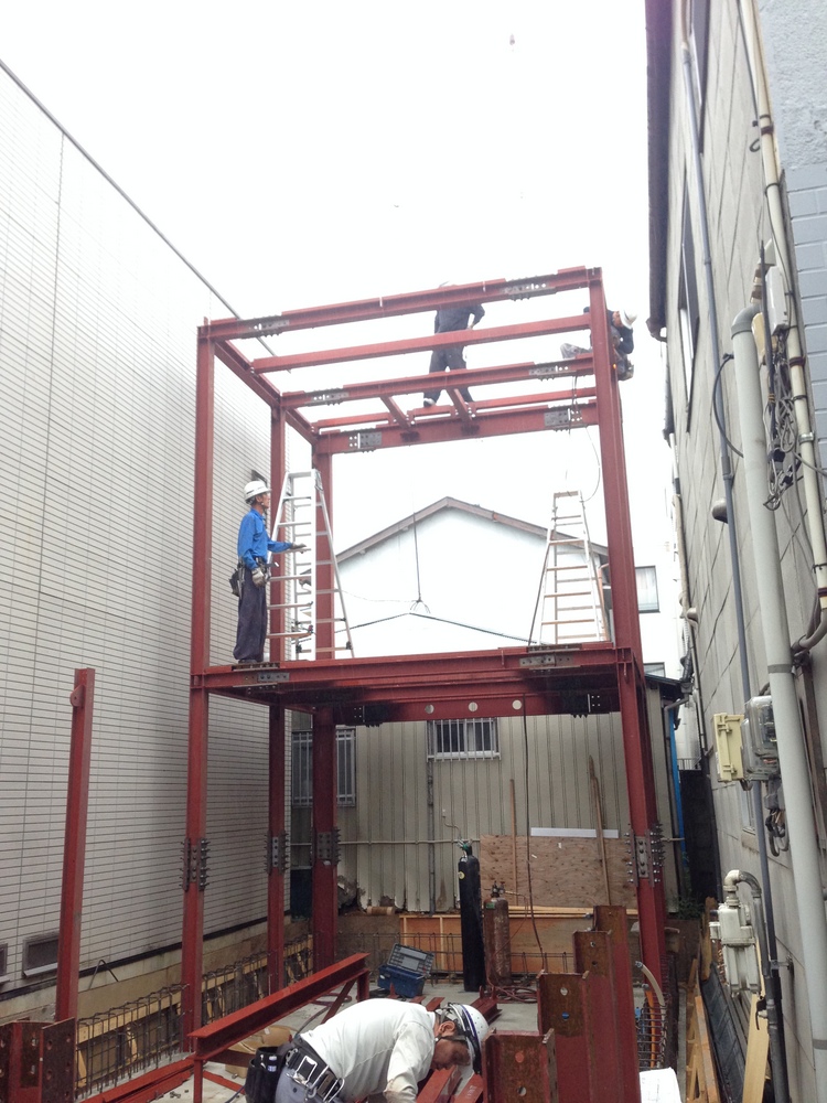 一番奥側から、一気に3階まで建てていきます。