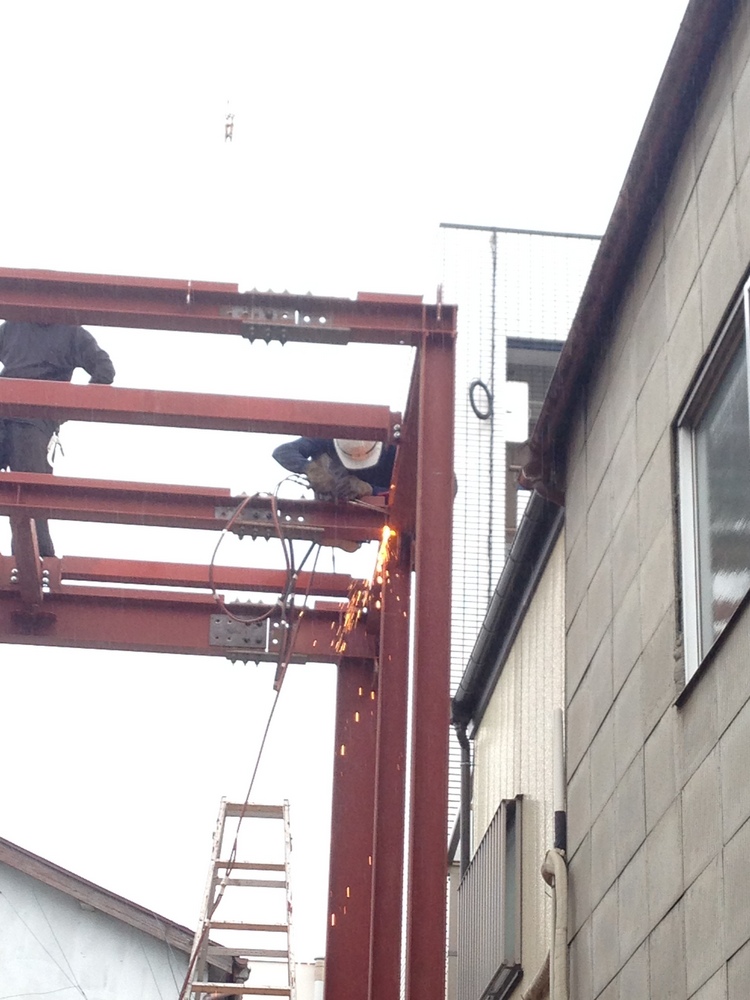 高所での溶接作業も慣れたものです。