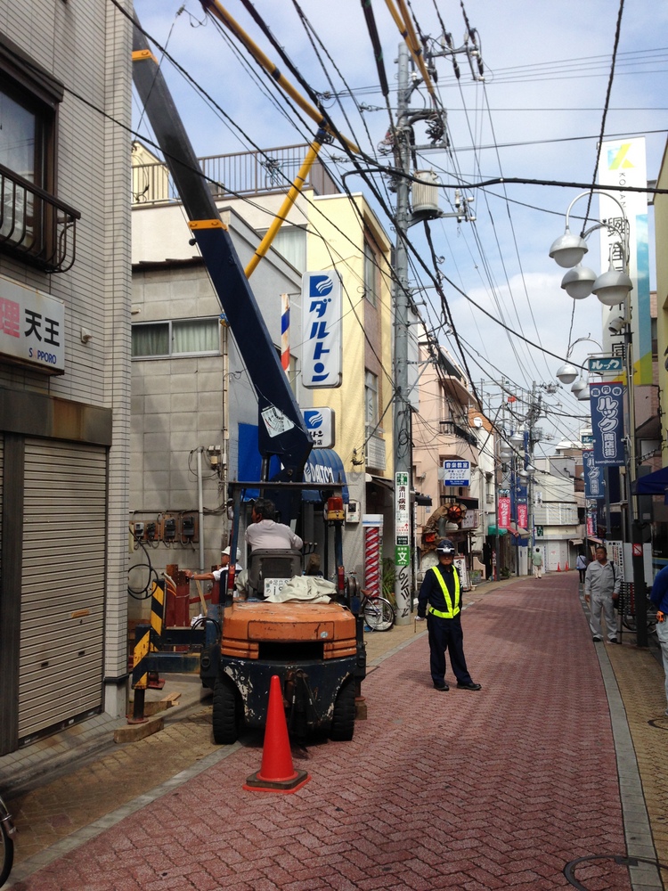 商店街に合わせた、とってもちいさな小型クレーン。