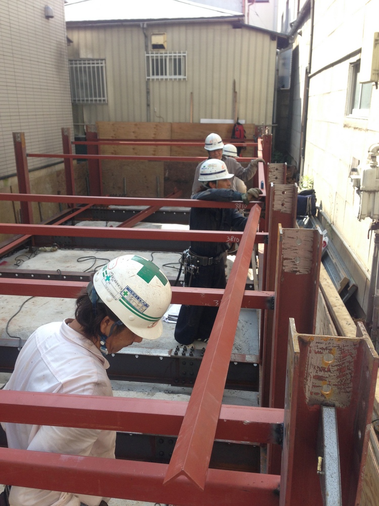 間口が狭い敷地のため、搬入と組み立てを検討し、
