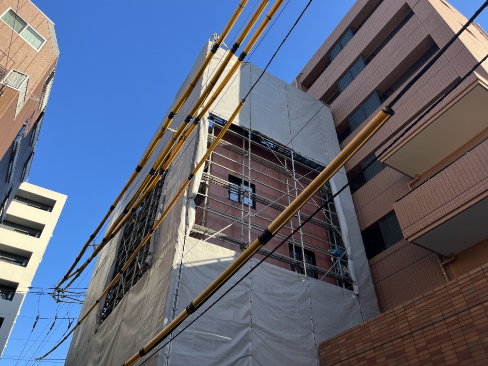 中野新橋の集合住宅、まもなく足場解体