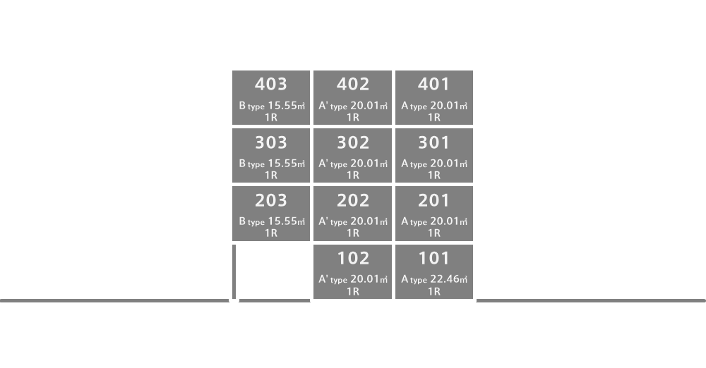竣工:2016年1月|集合住宅(11戸) | 計画地 : 東京都練馬区 |敷地面積 : 84.22m2(25.5坪)|建築面積 : 68.83m2(20.8坪)|建ぺい率:81.73%(許容:100%)| 延床面積 : 272.75m2(82.5坪)|容積率:274.92%(許容:300%)| 構造 : RC造 | 規模 : 地上4F建て | 設計 : 2014年9月-2015年6月 | 施工 : 2015年7月-2016年1月 |