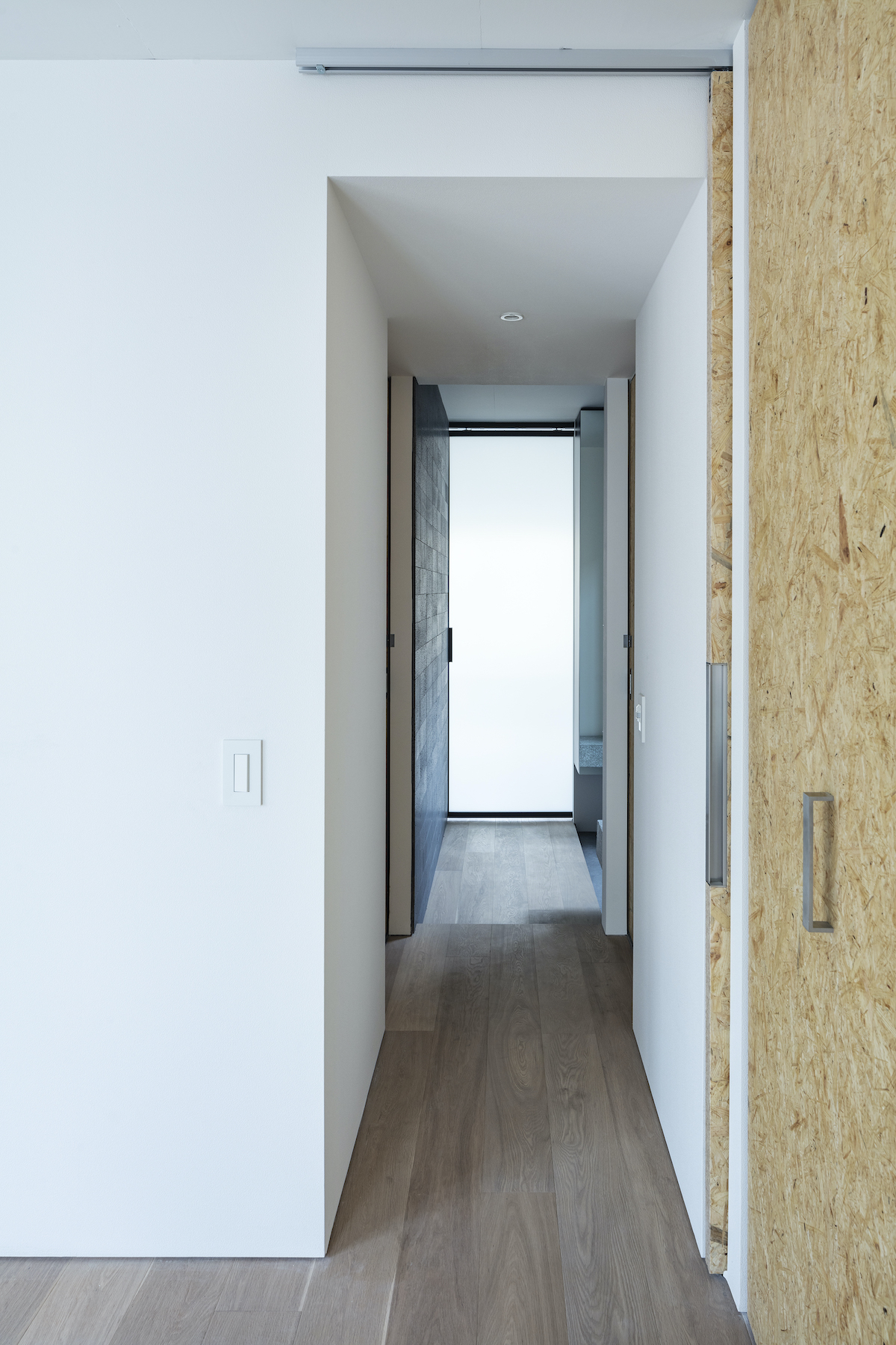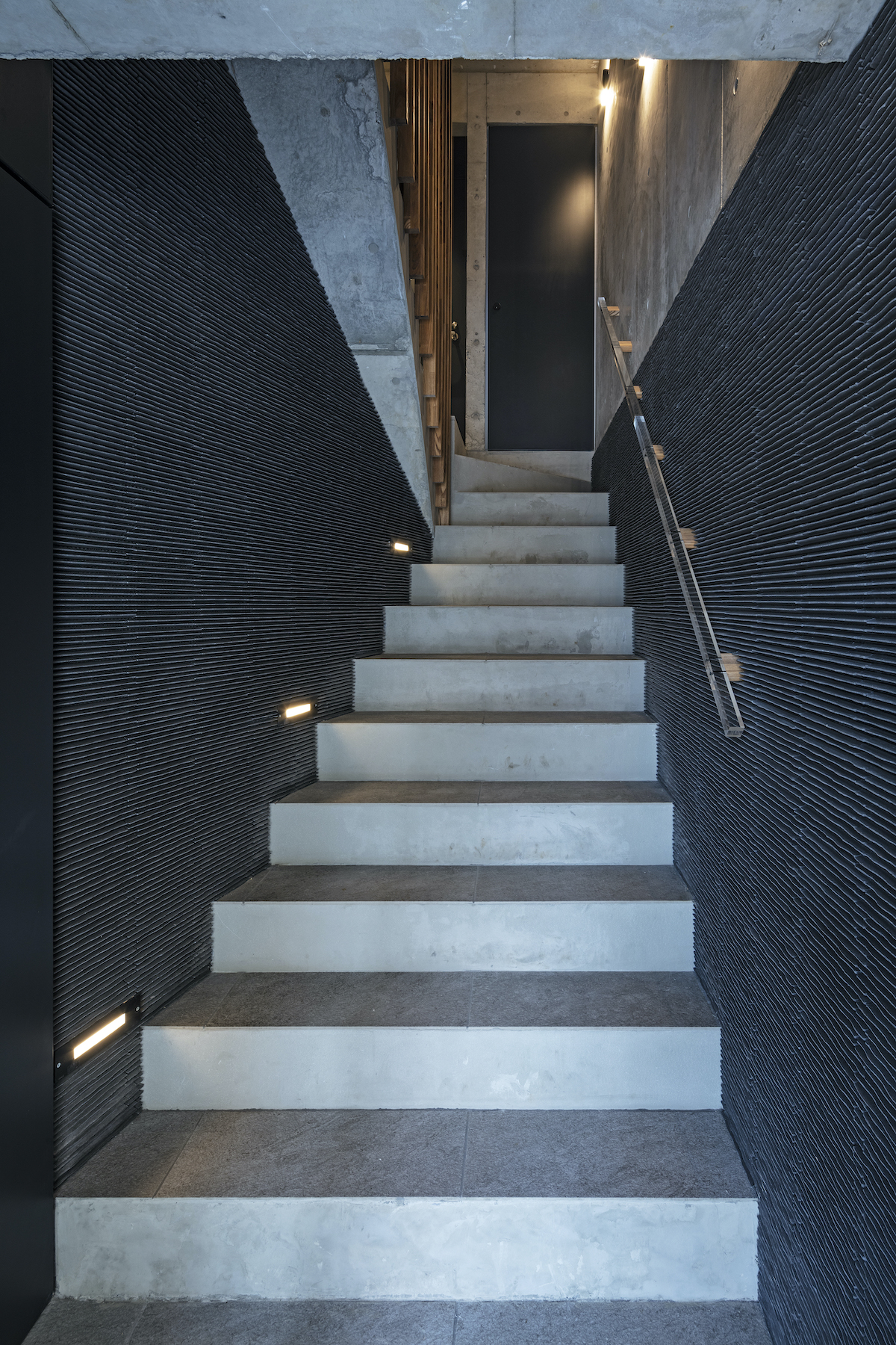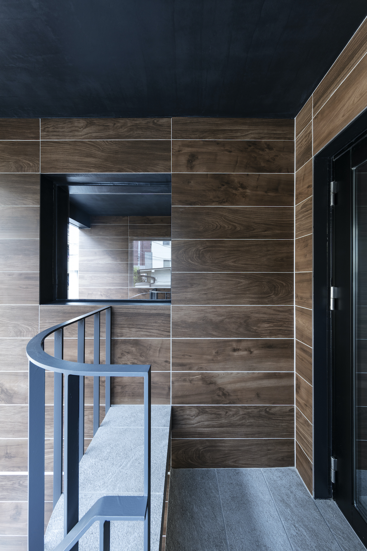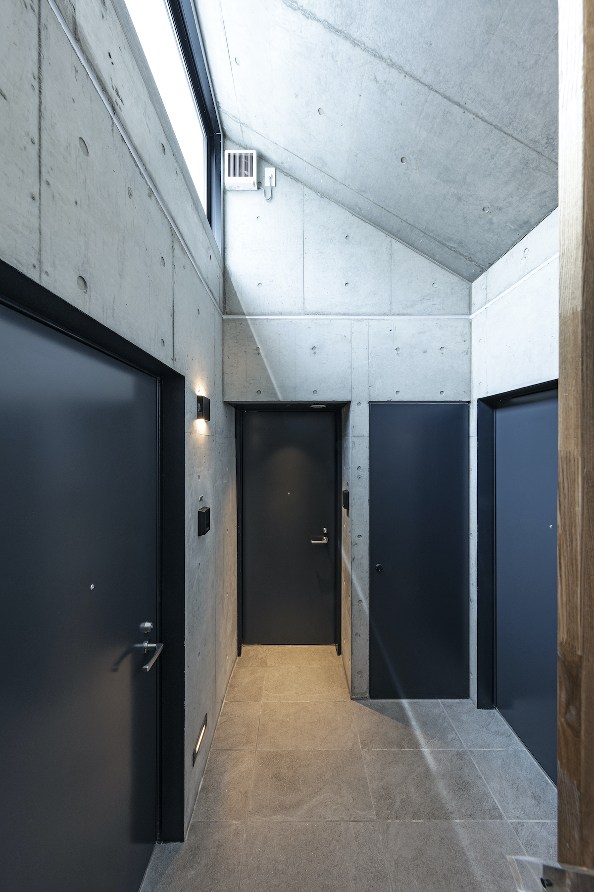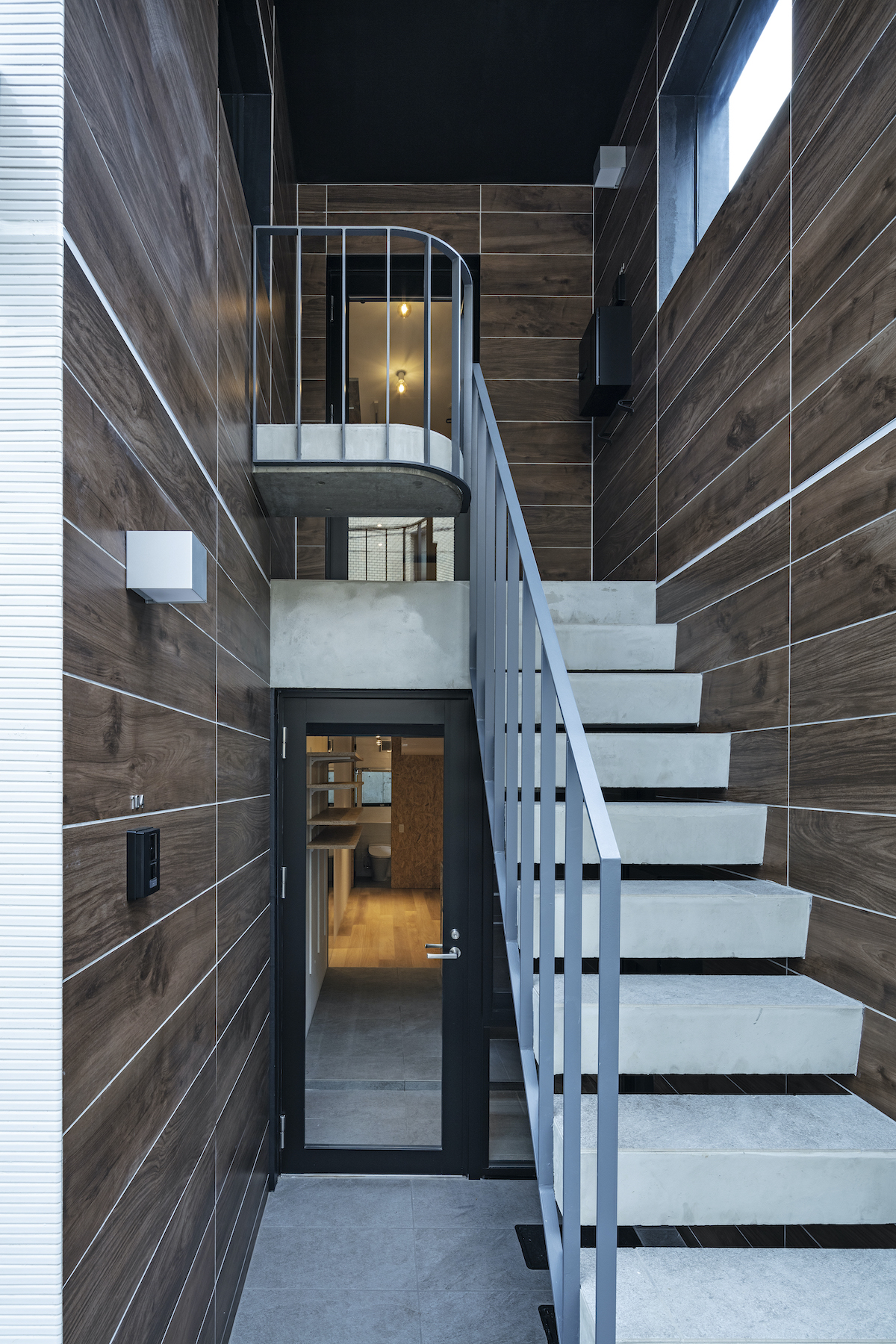 最上階は片流れのハイサイドライトとして窓のない共用階段を明るくしている