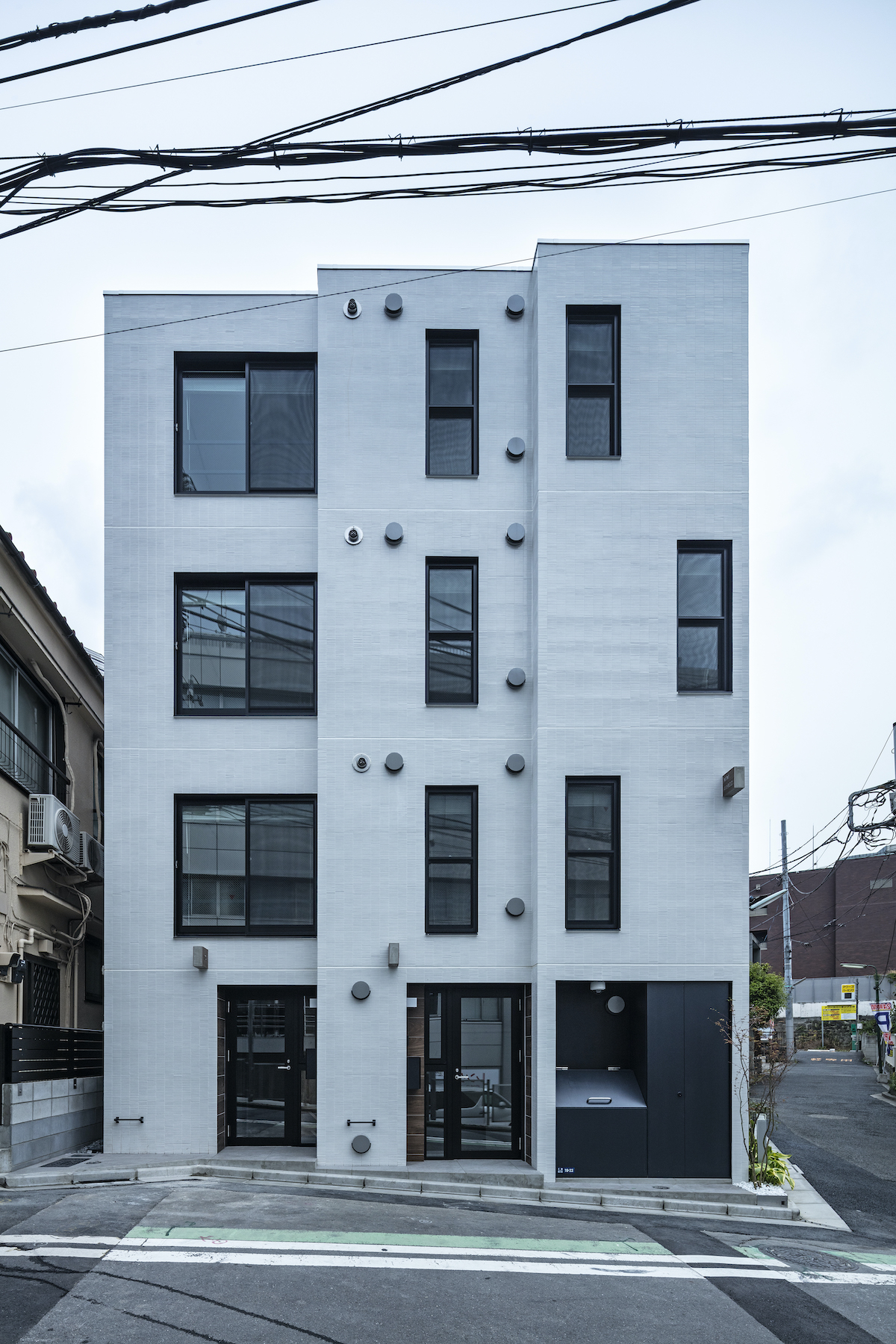 1階2部屋は長屋。右側は引込み開閉器盤とダストボックスを建物に組み入れている