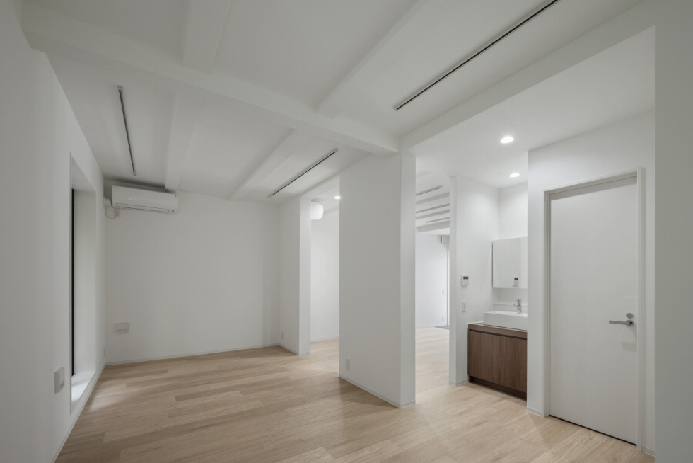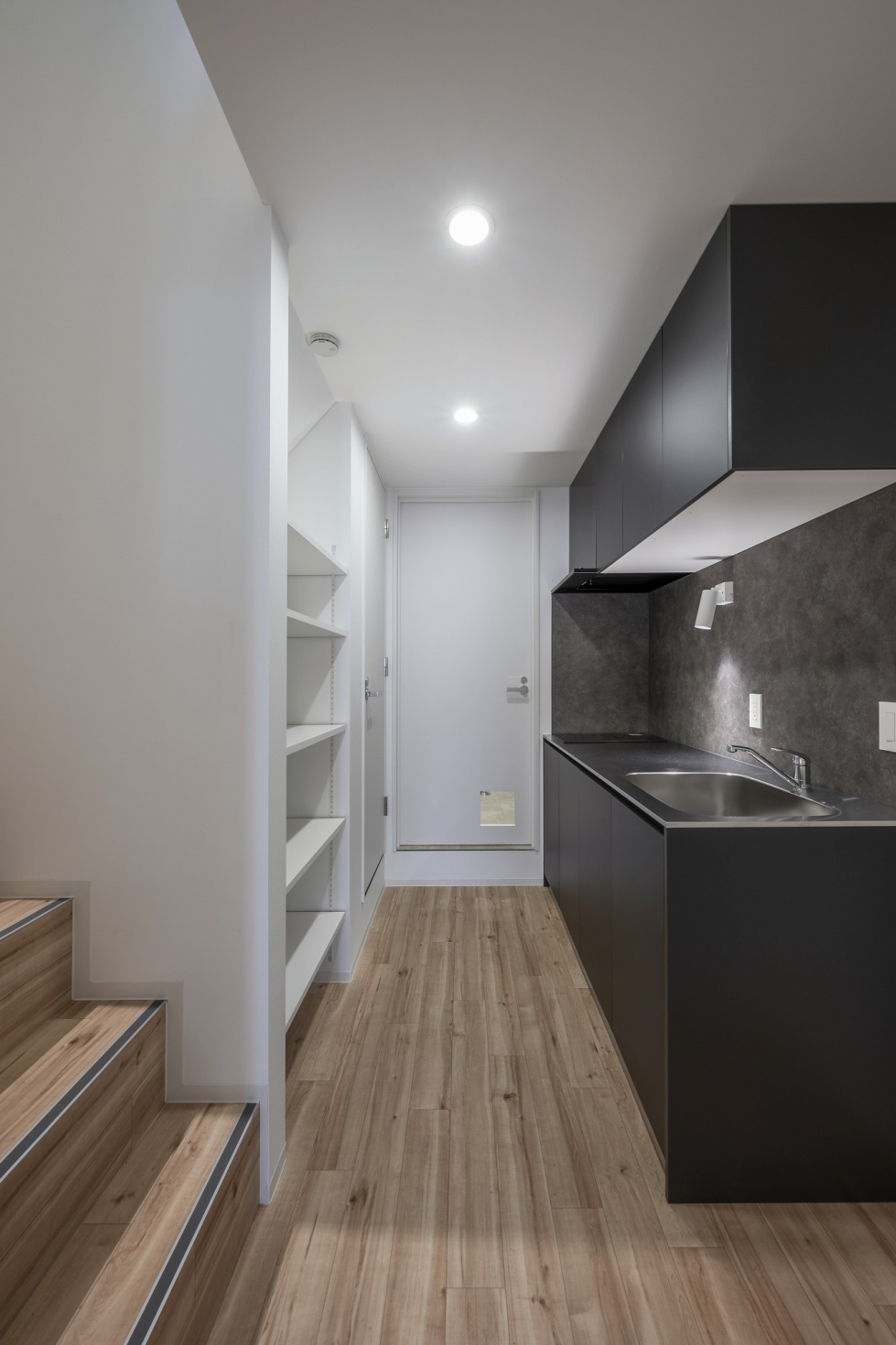 そこでこのプロジェクトでは、周辺にはない広さの部屋(48㎡)とし、しっかりとした2DKの間取りとすることになった。その間取りもDKは1階、2つの個室は2階へ分散したメゾネット形式にすることでプライバシーが保ちやすく、SOHOとしても利用しやすくした。
