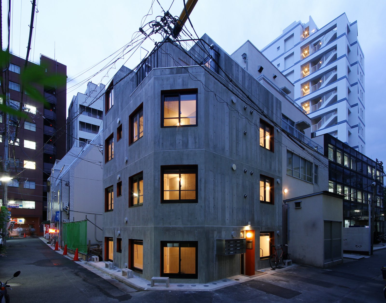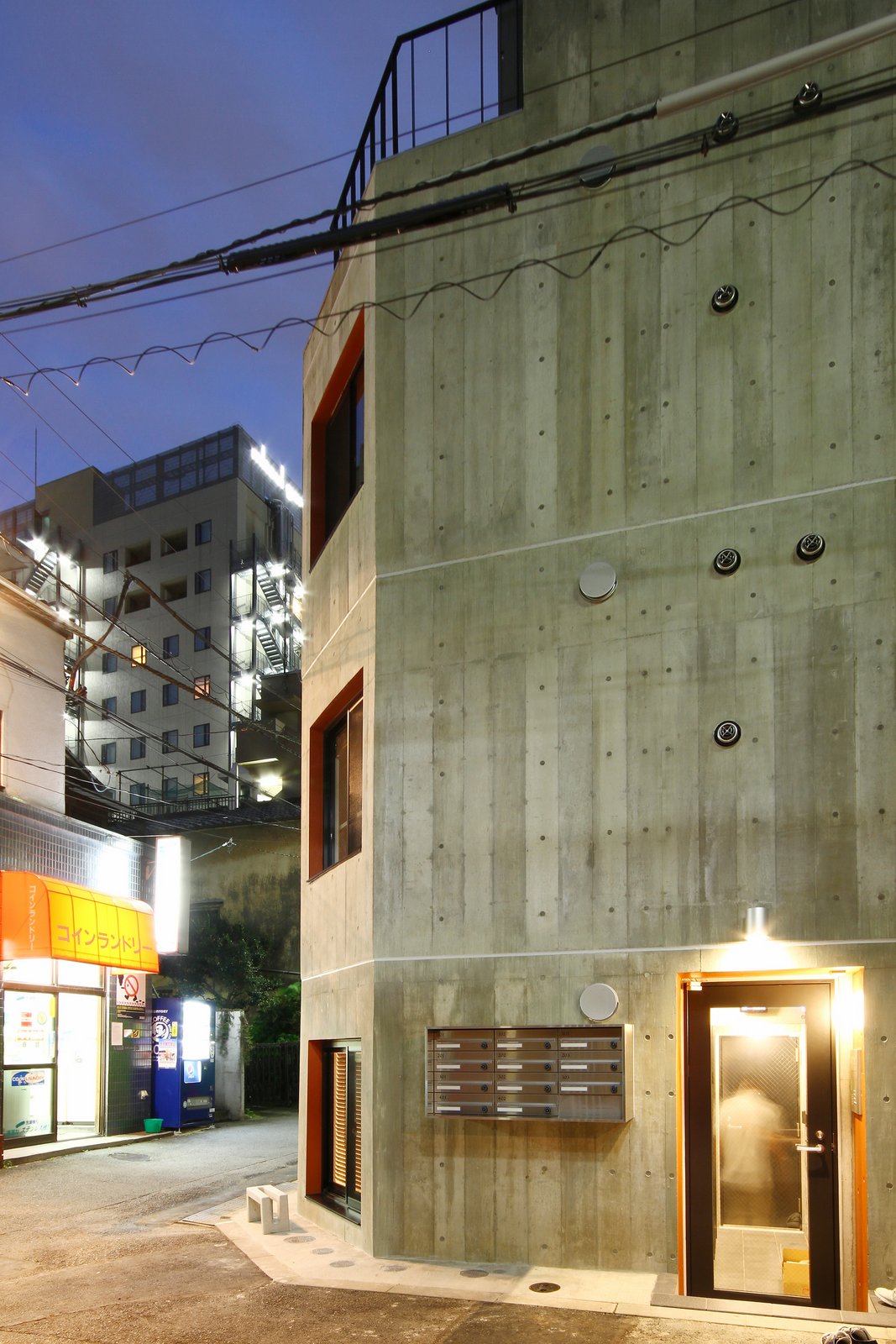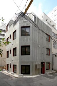 竣工:2013年10月|用途:集合住宅(8戸)+事務所(3戸) |計画地 : 東京都新宿区|敷地面積 : 50.58m2(15.3坪 |建築面積 : 36.60m2(11.1坪)| 建ぺい率:72.36%(許容:80%)|延床面積 : 146.40m2(44.3坪)|容積率:229.81%(許容:240%)|構造 : RC造|規模 : 地上4F建て | 設計 : 2012年7月-2013年3月 | 施工 : 2013年3月-10月 |