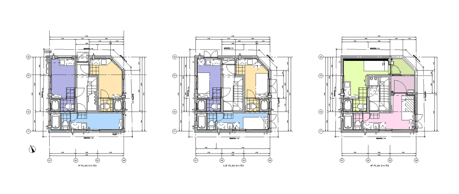 「15坪の土地に11戸。天空率でランダムに削られた4階と着色された開口廻り」